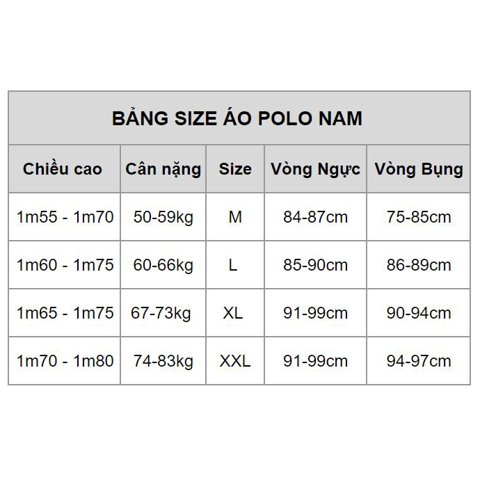 Quý khách vui lòng tham khảo bảng size bên dưới để lựa chọn size áo phù hợp cho mình.